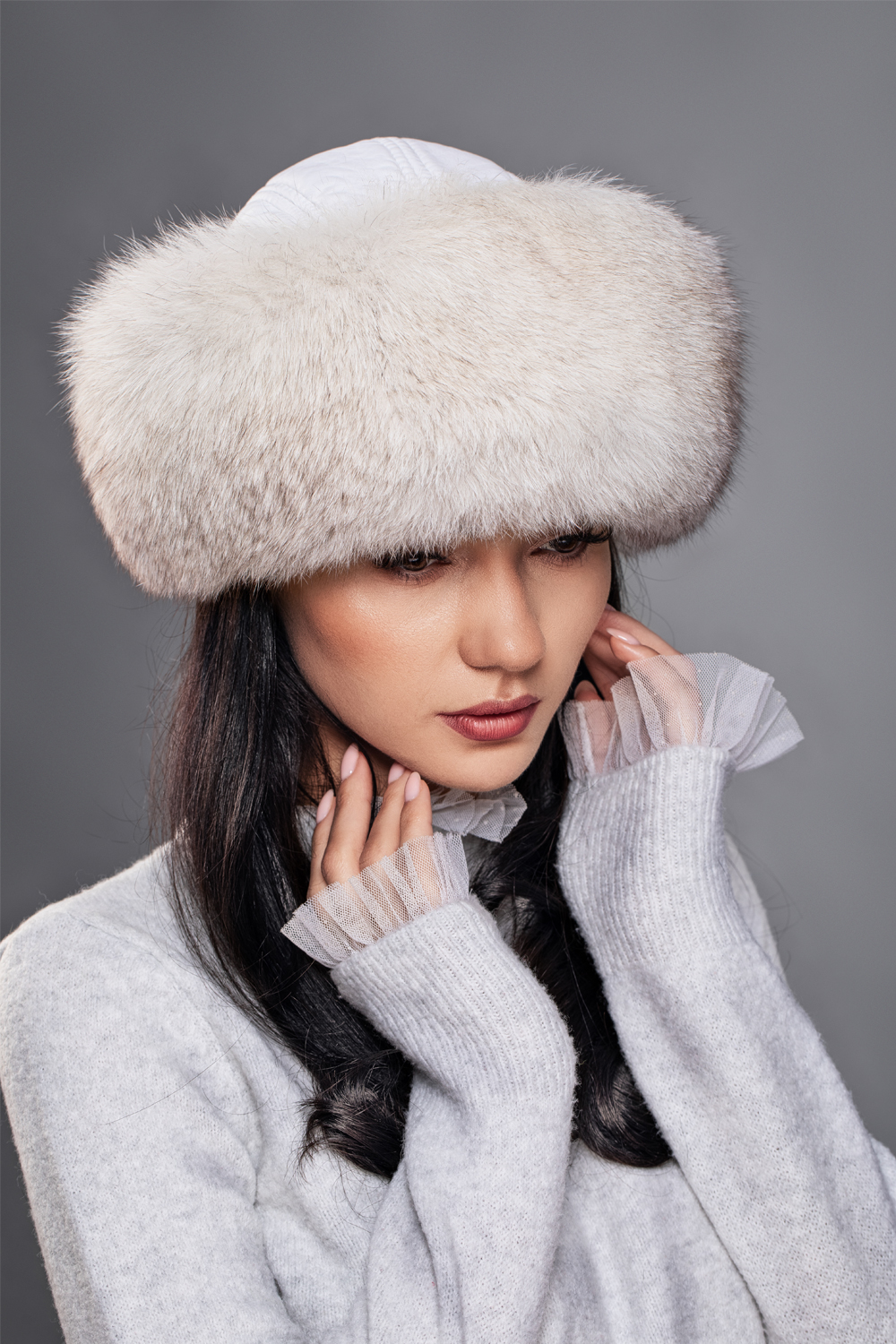 Din punct de vedere estetic, culoarea alb natural joacă un rol esențial în definirea eleganței, iar căciula Victoria din blană naturală de vulpe polară reușește să transmită rafinament prin simplitate și coerență. Nuanța deschisă pune în valoare textura blănii și evidențiază calitatea materialului, fără a necesita elemente decorative suplimentare. Pielea contribuie la delimitarea clară a liniilor și la susținerea unui aspect ordonat, bine structurat. Întregul design este gândit pentru a crea o impresie de echilibru și stil, în care fiecare detaliu vizibil este integrat firesc. Această abordare conferă piesei un caracter atemporal, ușor de asociat cu ținute elegante, fără a depinde de tendințe trecătoare.