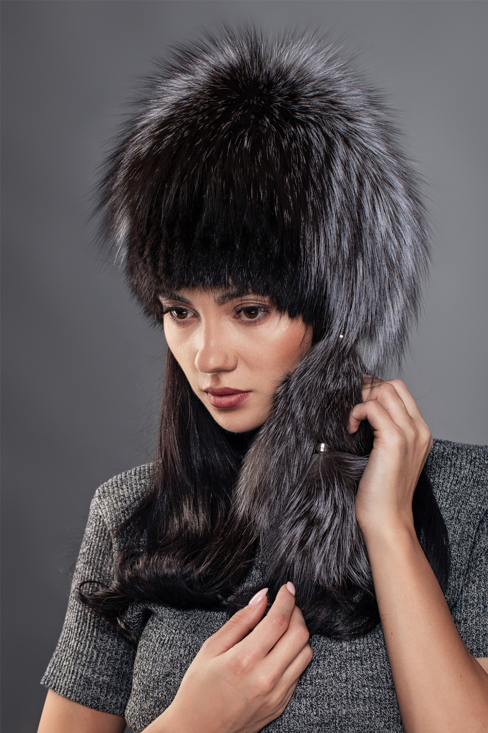 Datorită calității materialelor, acest fes din blană naturală de nurcă și vulpe se evidențiază nu doar prin aspect, ci și prin durabilitate. Blana naturală păstrează căldura, respinge frigul și își menține forma în timp, ceea ce transformă piesa într-o investiție inteligentă pentru garderoba de iarnă. Contrastul dintre nuanțele de gri închis și gri argintiu subliniază profunzimea vizuală a accesoriului, oferindu-i o eleganță atemporală.
