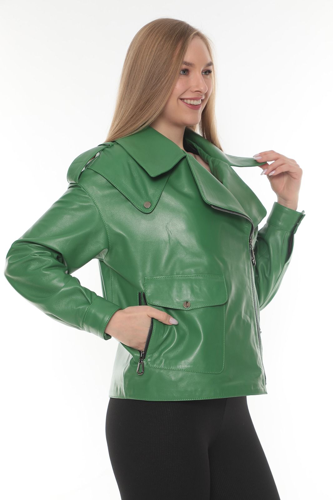 Geaca din piele Aris aduce o explozie de stil și rafinament în garderoba ta, printr-o combinație atent echilibrată de culoare intensă, piele naturală de calitate și un design modern care evidențiază personalitatea și eleganța purtării de zi cu zi. Dacă apreciezi jachetele scurte care se așează impecabil pe siluetă și oferă un plus de dinamism fiecărei ținute, geaca din piele Aris te va surprinde plăcut prin felul în care se integrează atât în outfituri casual, cât și în ținutele mai elaborate. Nuanța vibrantă de verde îți pune instant în valoare prezența, iar textura fină a pielii naturale conturează un aspect premium.