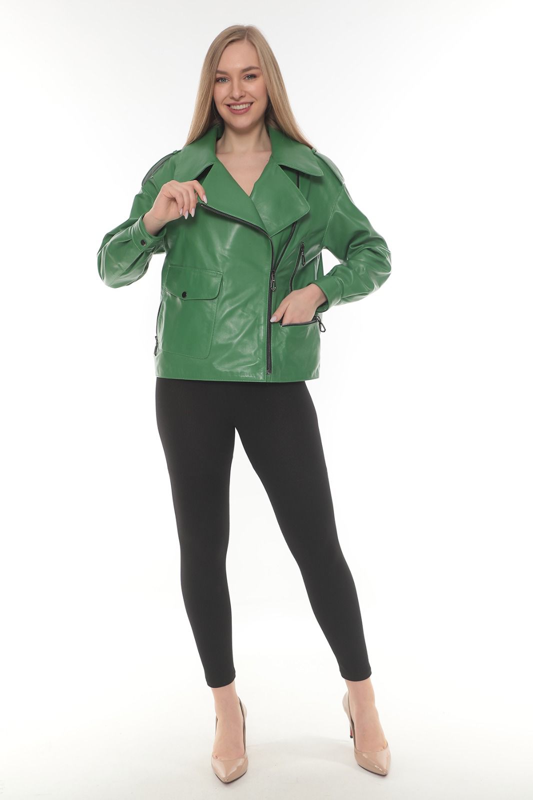 În concluzie, geaca din piele Aris reprezintă o alegere inspirată pentru garderoba ta dacă îți dorești un articol premium care îmbină durabilitatea pielii naturale cu un design plin de personalitate. Nuanța verde intens, elementele metalice moderne și croiala scurtă transformă această geacă într-o investiție pe termen lung, care se potrivește atât stilului urban, cât și ținutelor mai elegante. Este o piesă care îți aduce versatilitate, confort și un accent statement ce va atrage întotdeauna privirile.