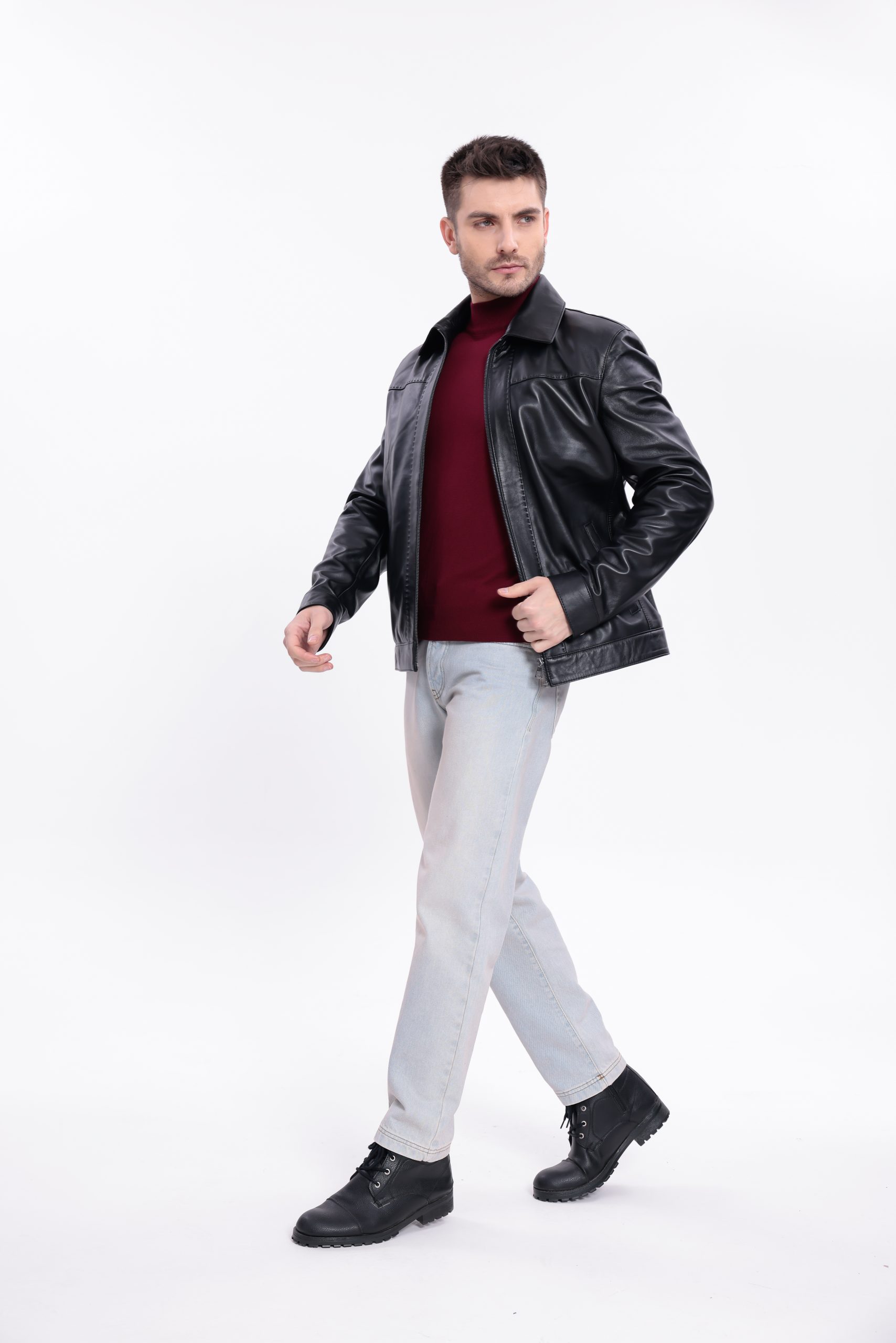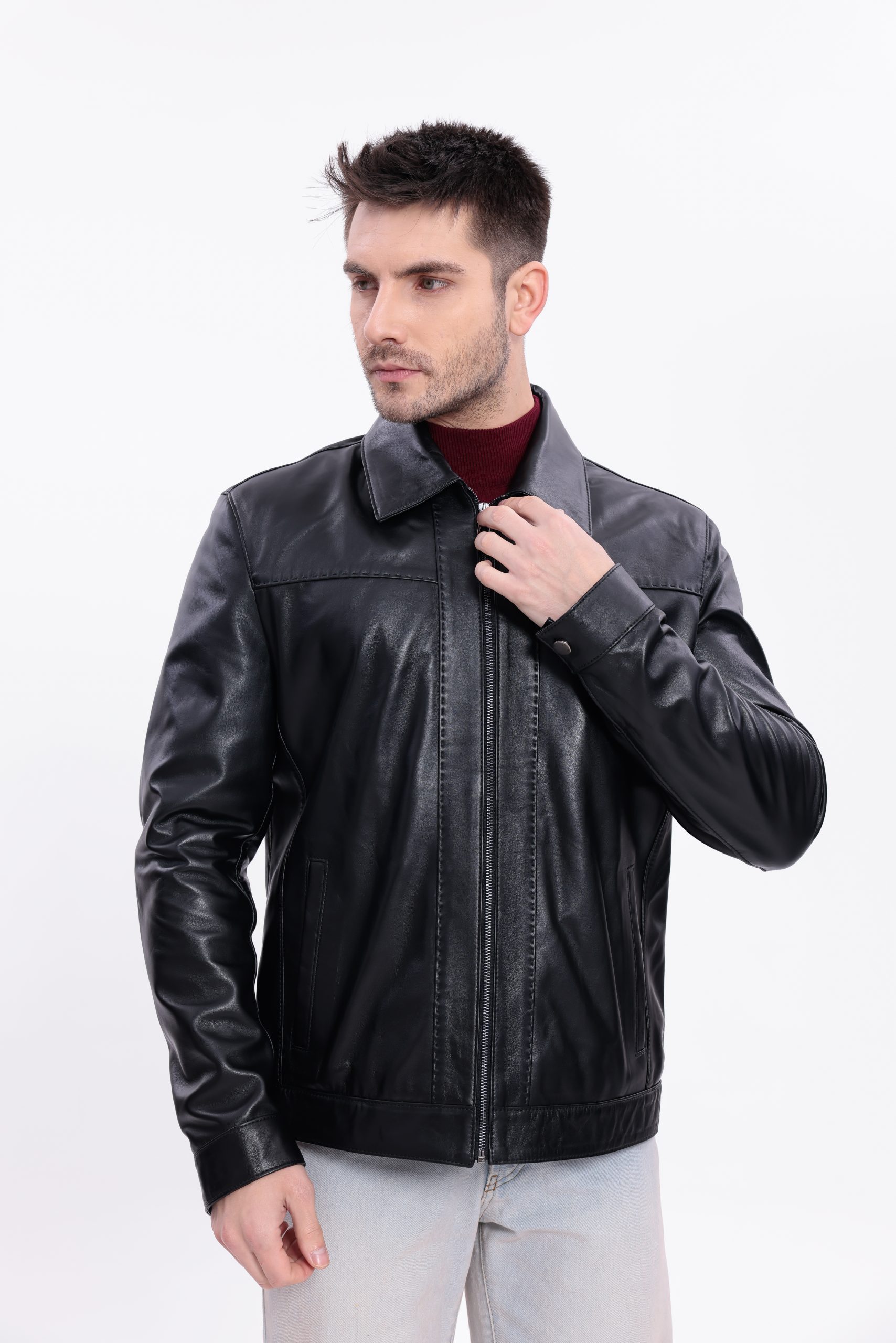 Geacă din piele naturală pentru bărbați, model Ares Black