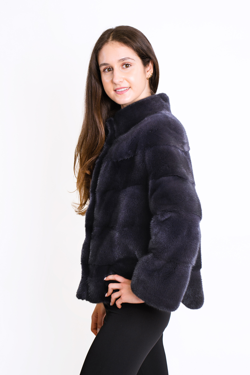 Haina din blană naturală de vizon impresionează prin intensitatea distinctă a culorii black pearl, o nuanță elegantă care conferă profunzime și caracter întregului design. Blana naturală se evidențiază prin luciul subtil și textura densă, așezându-se impecabil pe corp și contribuind la un aspect rafinat, potrivit pentru zilele reci ale sezonului. Croiala scurtă, de 60 cm, oferă libertate de mișcare și un echilibru ideal între funcționalitate și estetica modernă, transformând haina într-o alegere premium pentru garderoba de iarnă.