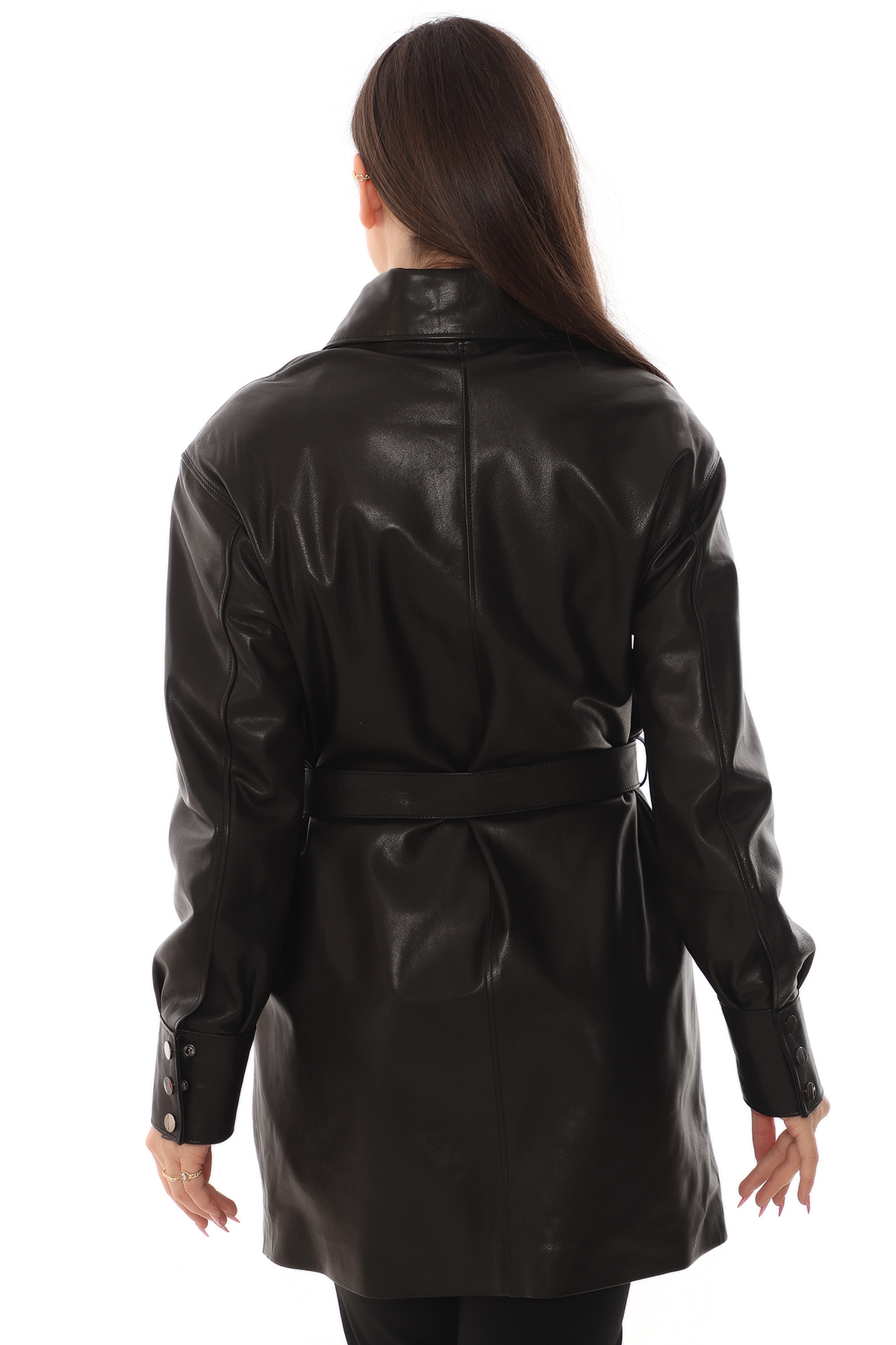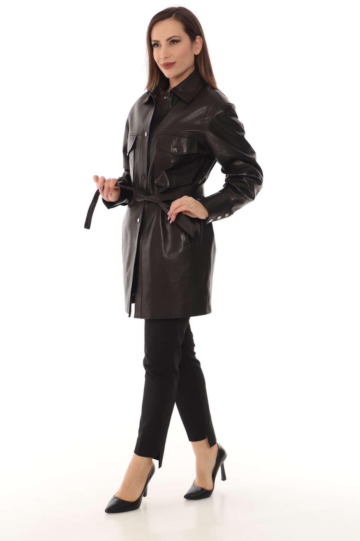 Haina din piele Ana este o piesă premium ce combină pielea naturală cu o croială lungă și detalii moderne pentru un stil elegant și rafinat.