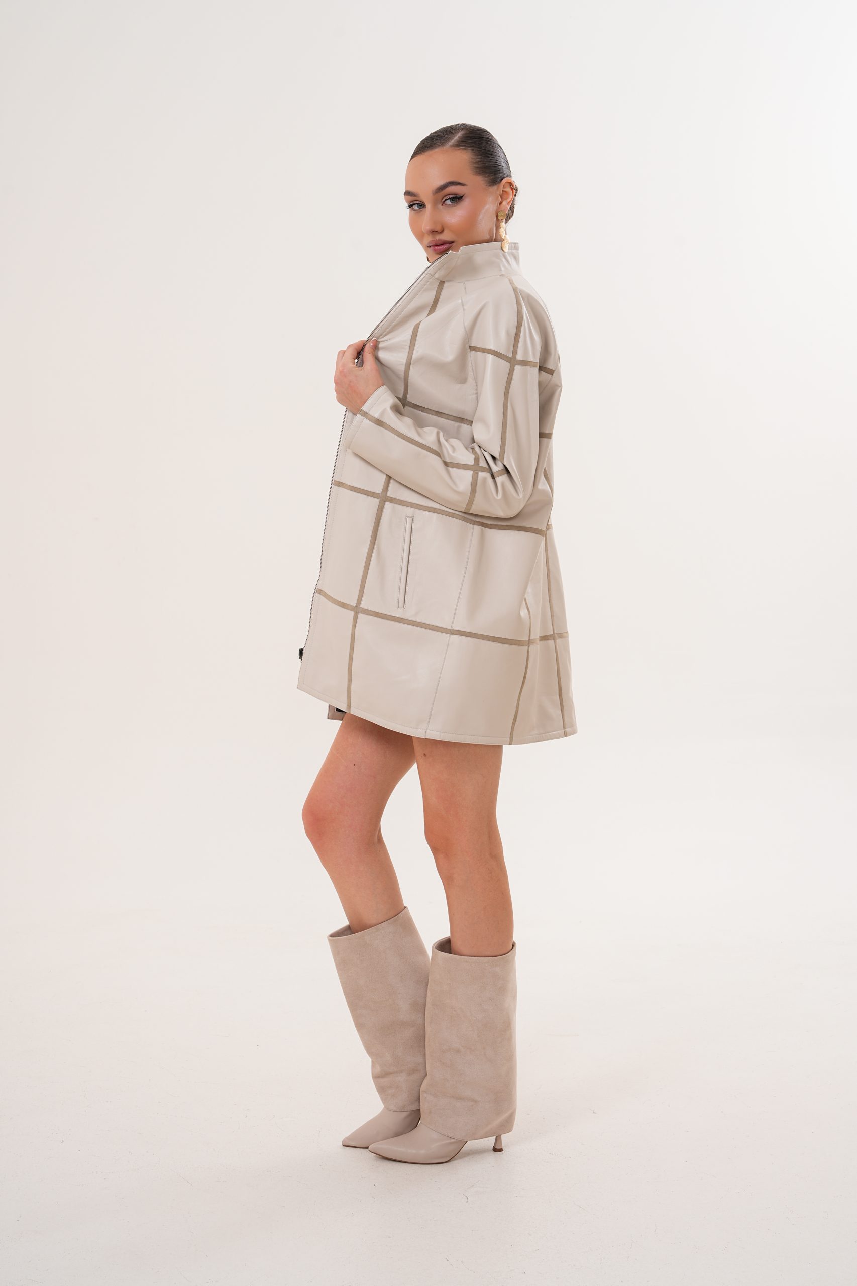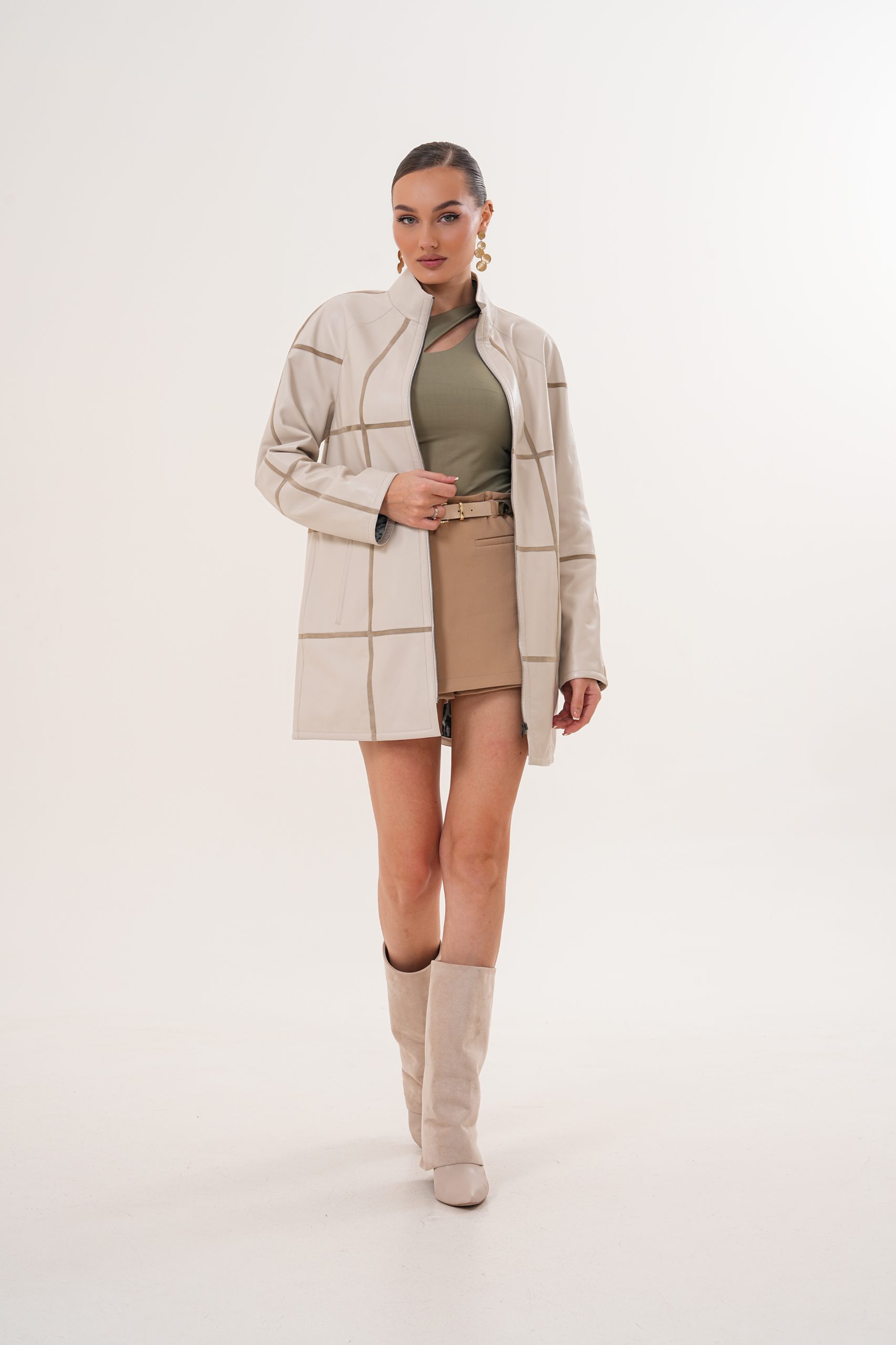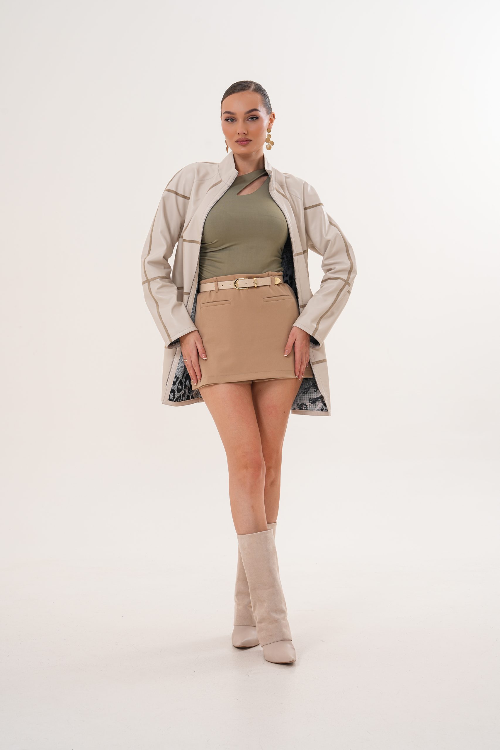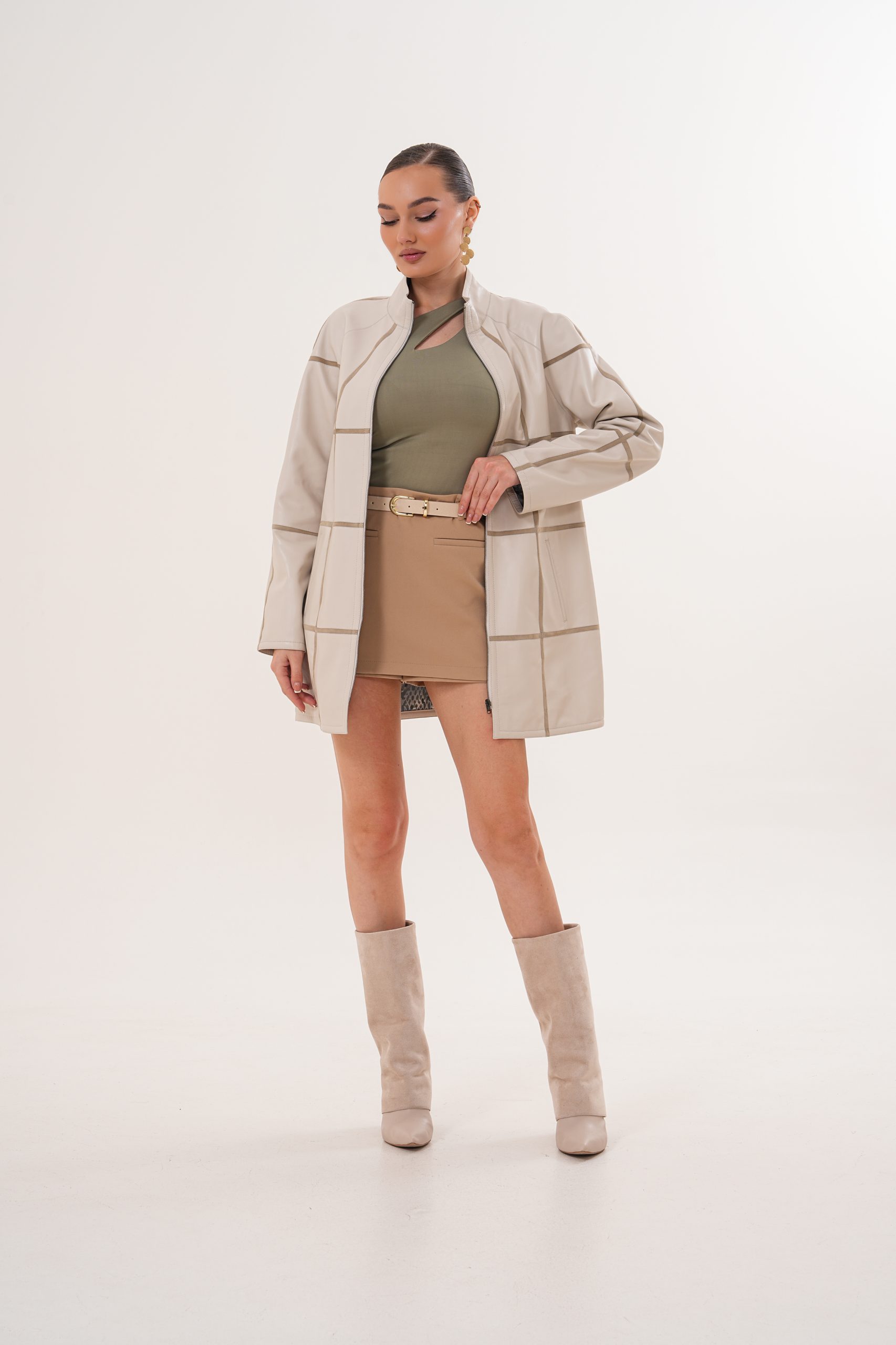 Haină din piele, model Serena, culoare bej