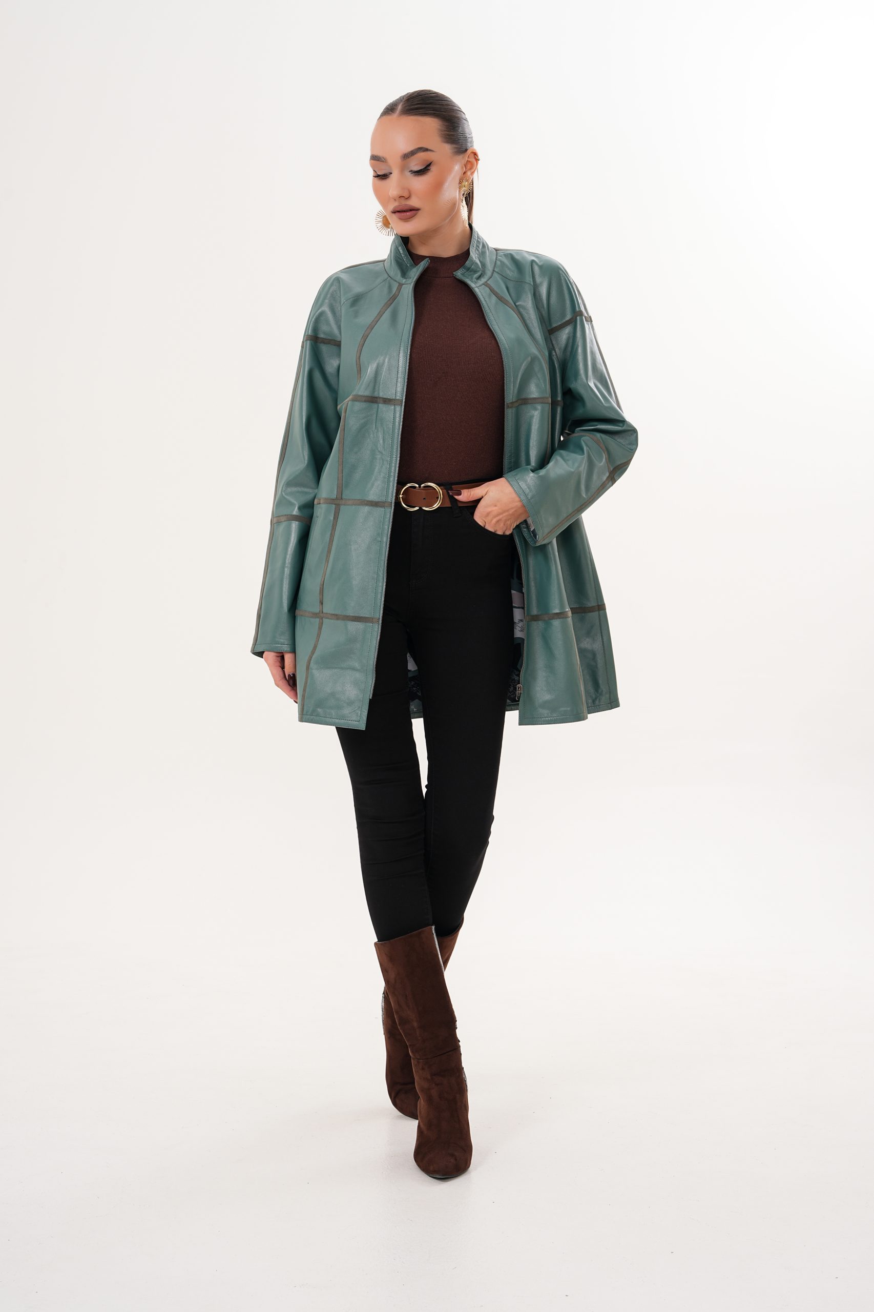 ✔ Prima față – piele naturală verde mentă, cu aspect elegant și structură impecabilă