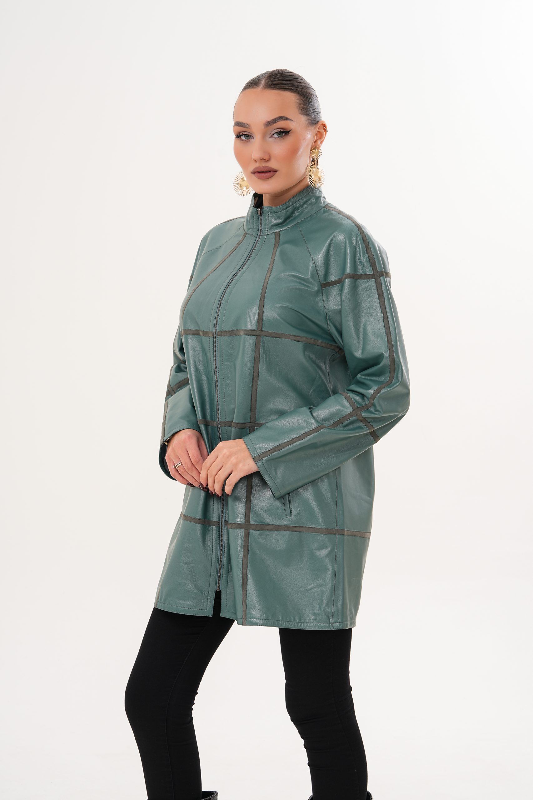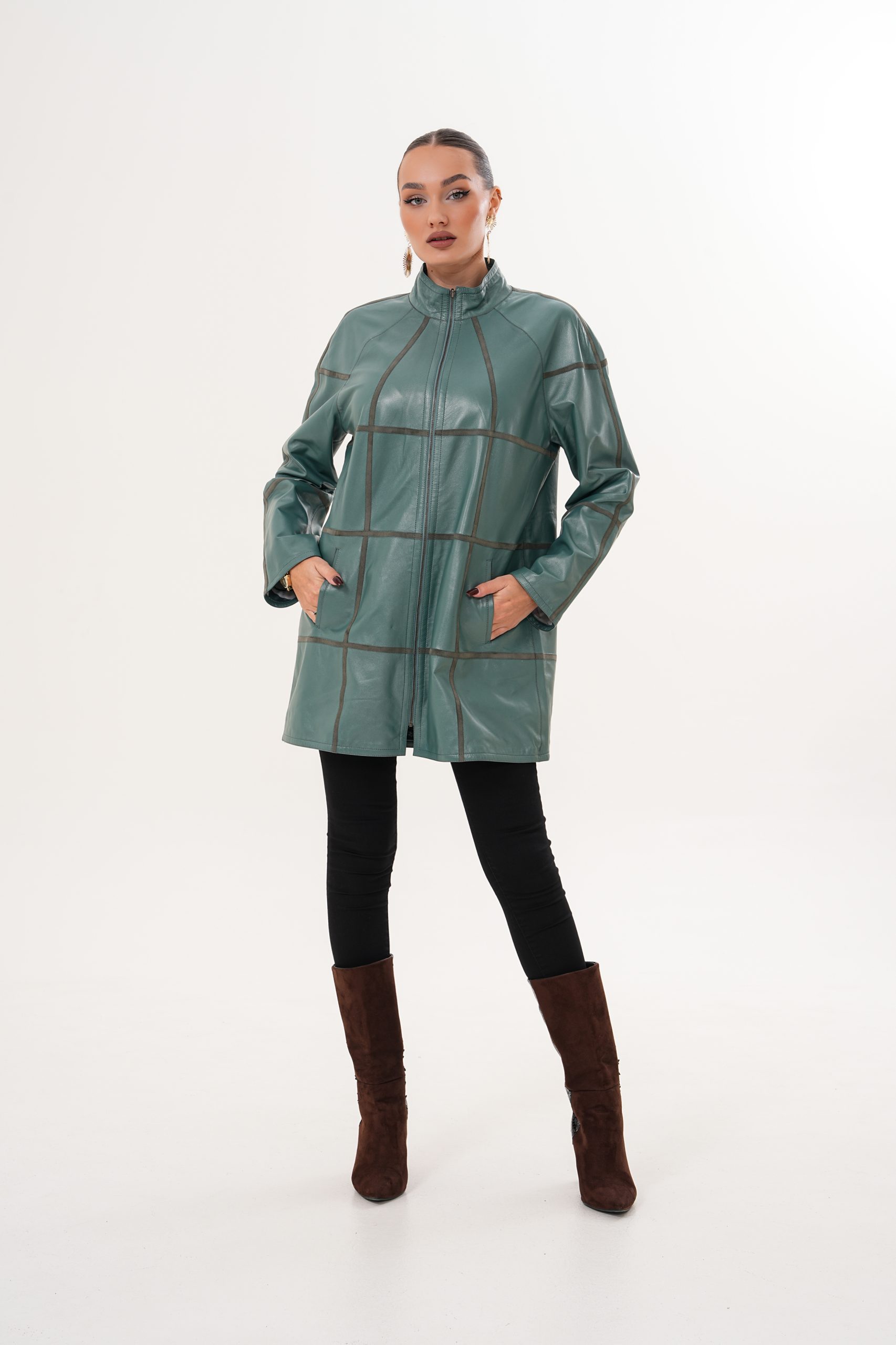 Descoperă eleganța modernă reinterpretată prin această haină din piele naturală de calitate superioară, două fețe, creată pentru femeia puternică, sigură pe stilul ei. Modelul impresionează prin croiala lejeră, lungime medie și detalii minimaliste, fiind ideal atât pentru ținute casual urbane, cât și pentru apariții sofisticate.