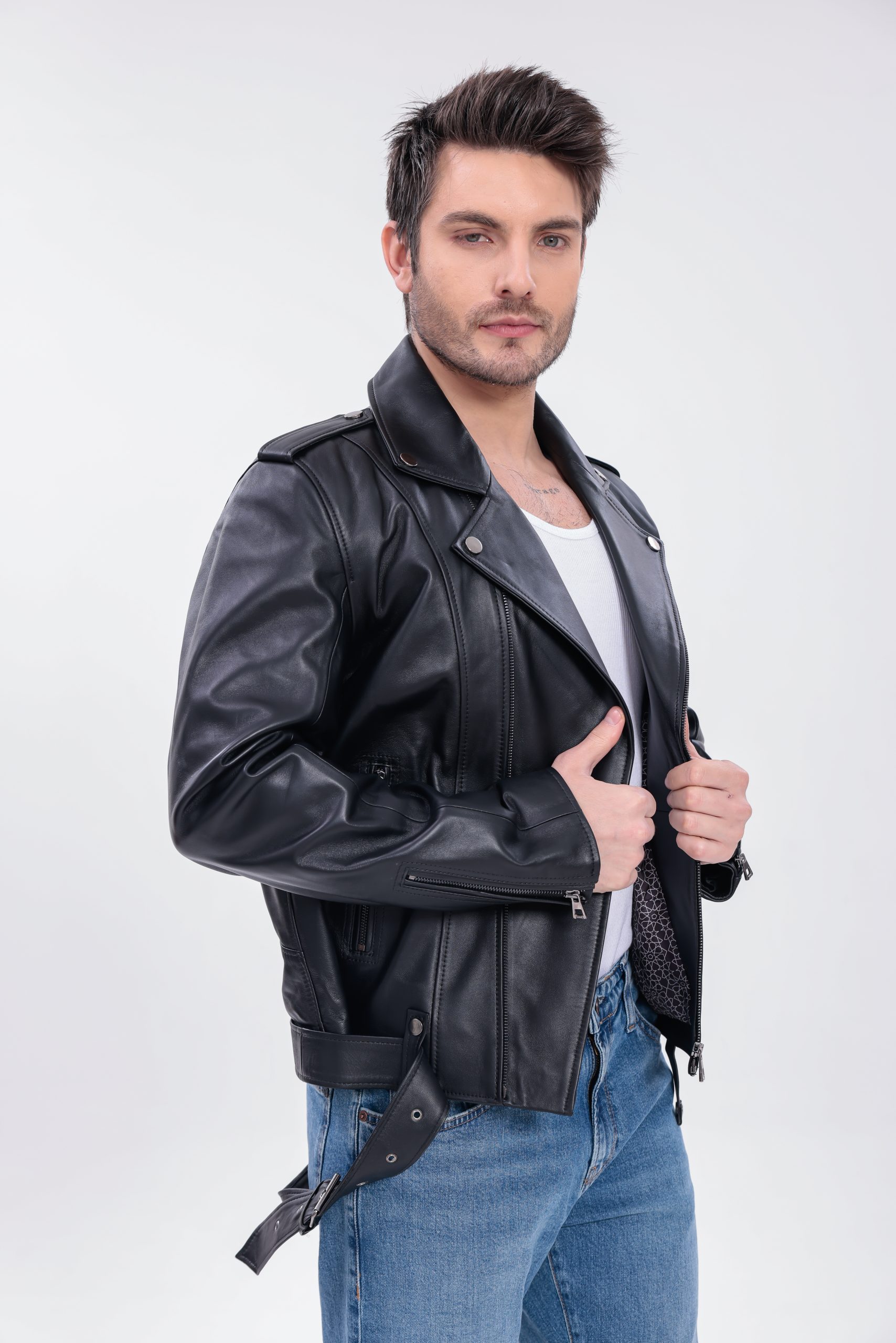 Confecționată din piele naturală premium, jacheta impresionează prin textura sa fină și rezistența în timp. Culoarea neagră clasică oferă versatilitate și se potrivește ușor cu diverse ținute casual sau urbane. Designul tip biker, cu guler larg și detalii metalice, conferă un aspect modern și puternic, ideal pentru bărbații care apreciază stilul autentic.