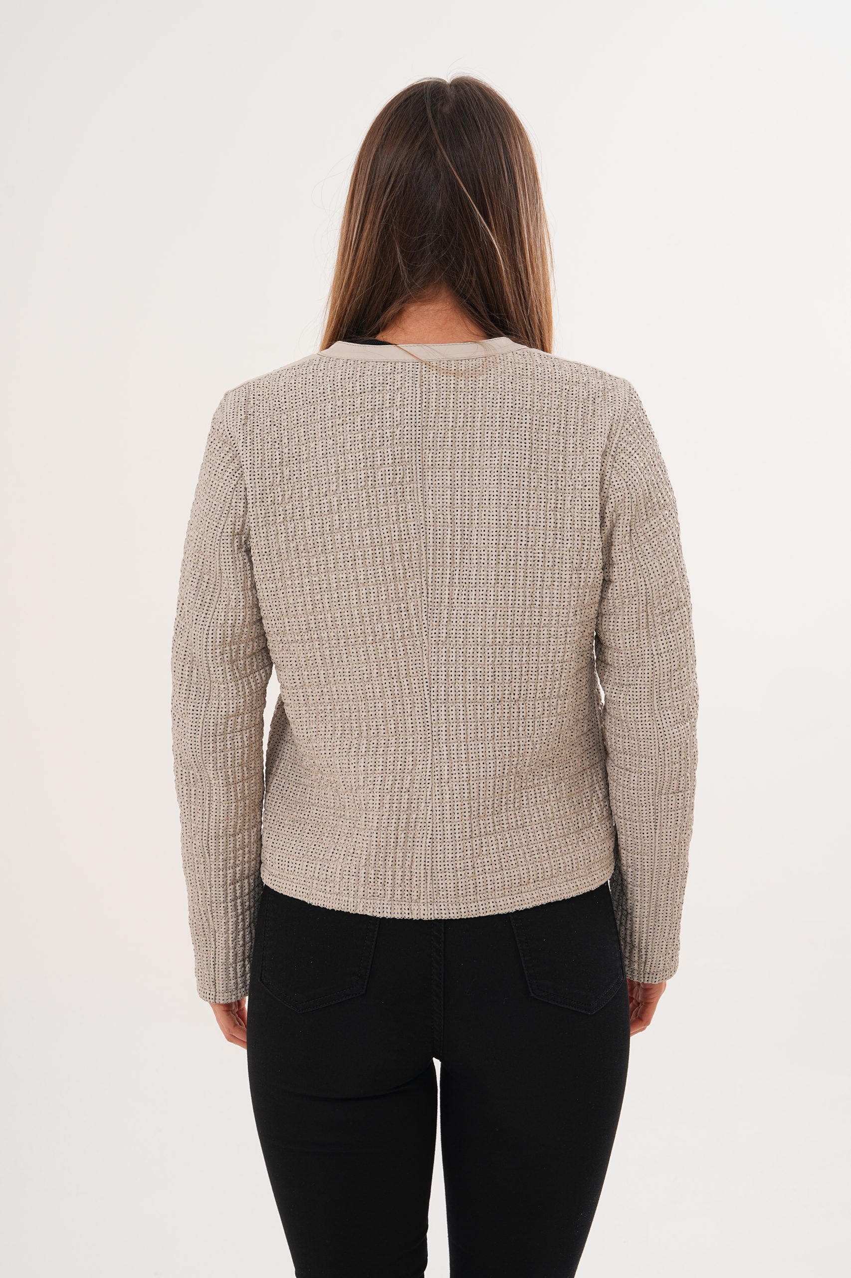 Jachetă damă din piele naturală perforată – Crem-Bej