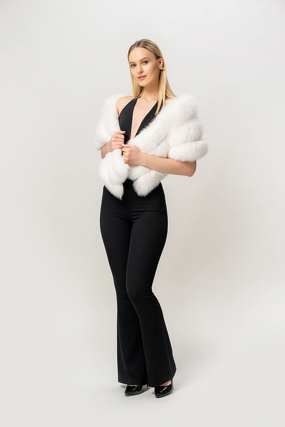 Acest șal din blană naturală de vulpe polară, culoare alb imaculat te încântă prin finetea blănii, luminozitatea nuanței și modul elegant în care se așează, oferind un accesoriu premium pentru orice ținută de iarnă.