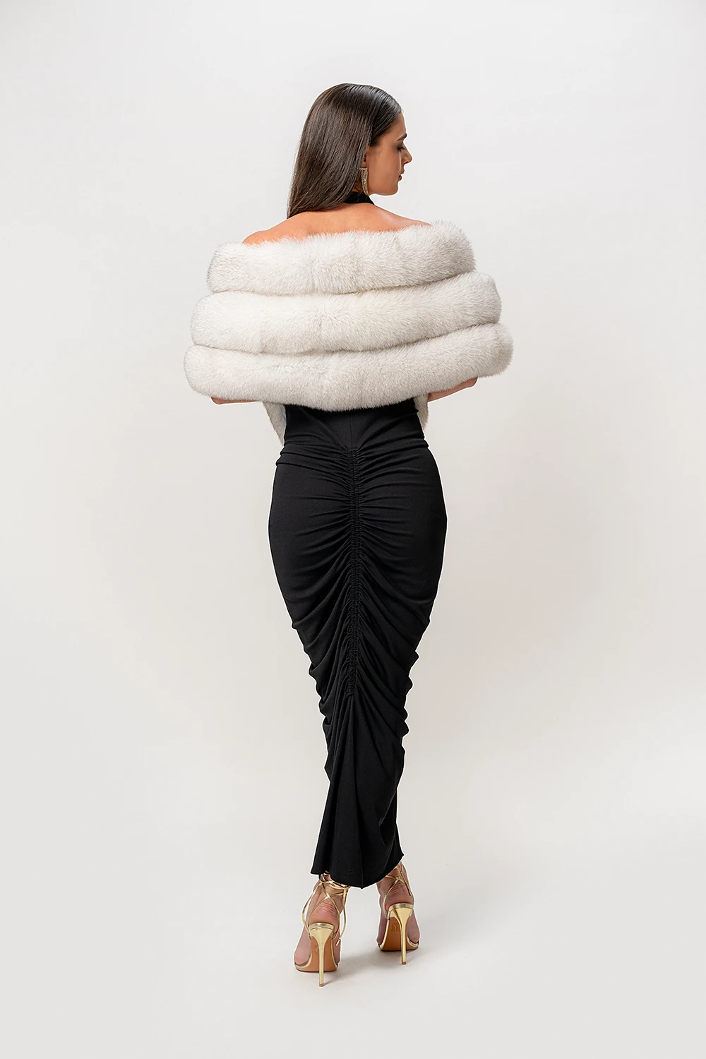 Șal din blană naturală de vulpe polară, culoare Alb-înspicat