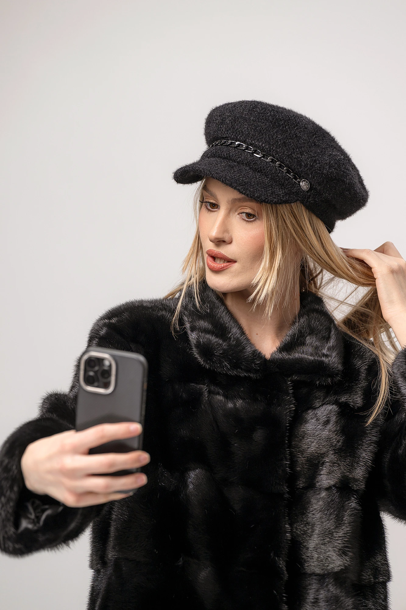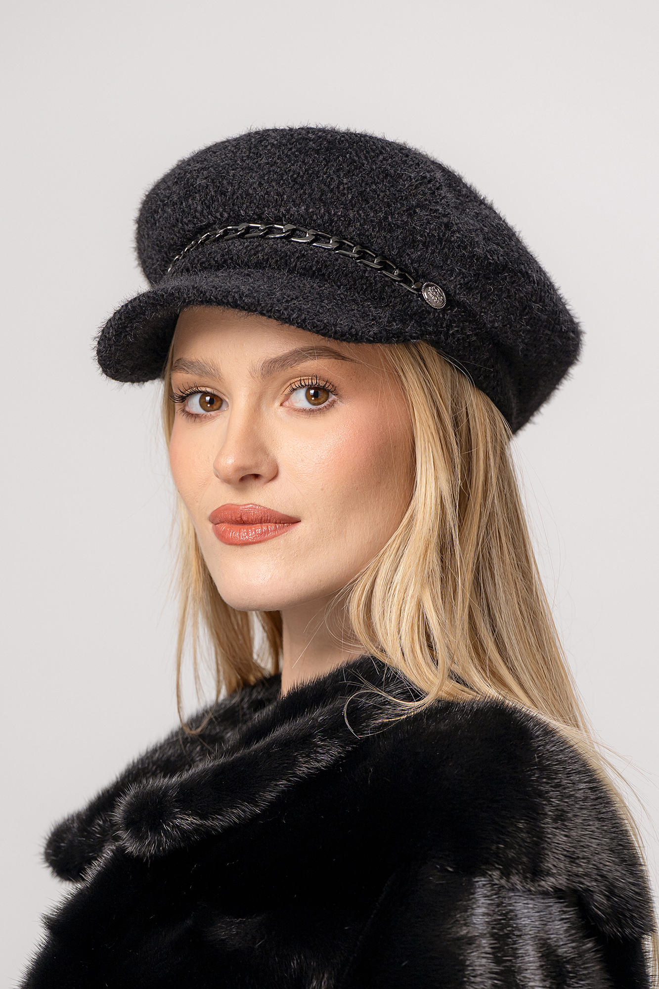 Șapca damă din textil cu interior polar, culoare neagră, mărime universală oferă un stil elegant și protecție termică, fiind perfectă pentru completarea ținutelor moderne din sezonul rece.